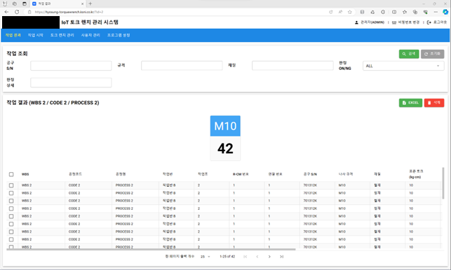- 조임 토크 값, 시간, 작업자, 제품번호 등 기록